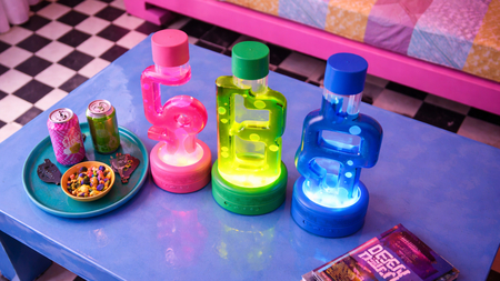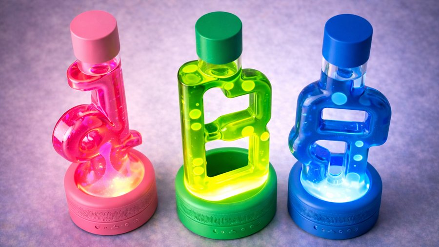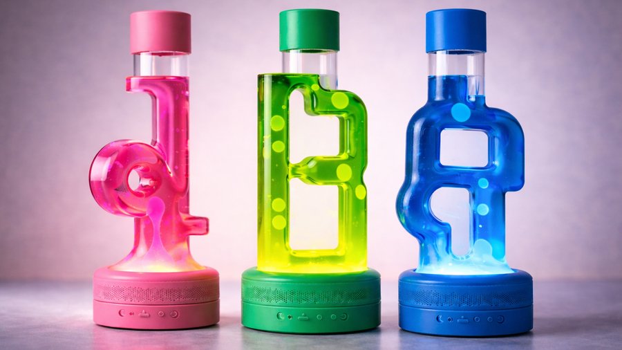 В этом модуле задачей стало разработать предмет интерьера на основе шрифта. Я решила взять за основу BLOCK FONT и, опираясь на его формы, создать серию «лавовых» светильников со встроенной колонкой для модного «дофаминового» интерьера.