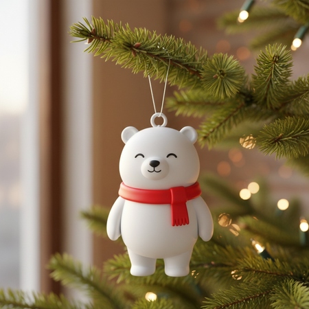 Назначение: Набор небольших ёлочных игрушек/брелков в виде северных животных (белый медведь, северный олень, морж, песец, полярная сова, нарвал, косатка, полярный заяц) в минималистичном стиле с обязательным красным шарфом и креплением под подвес.