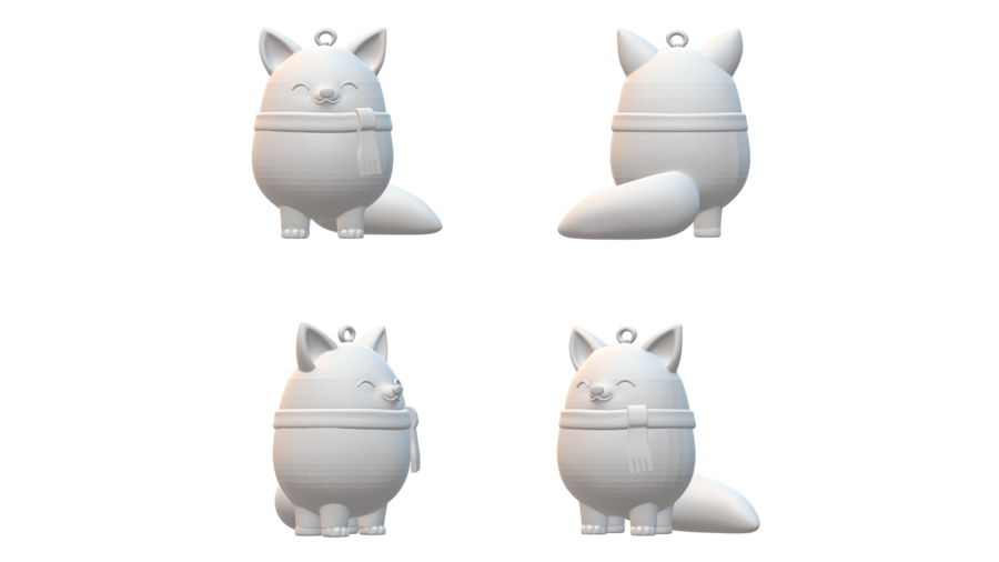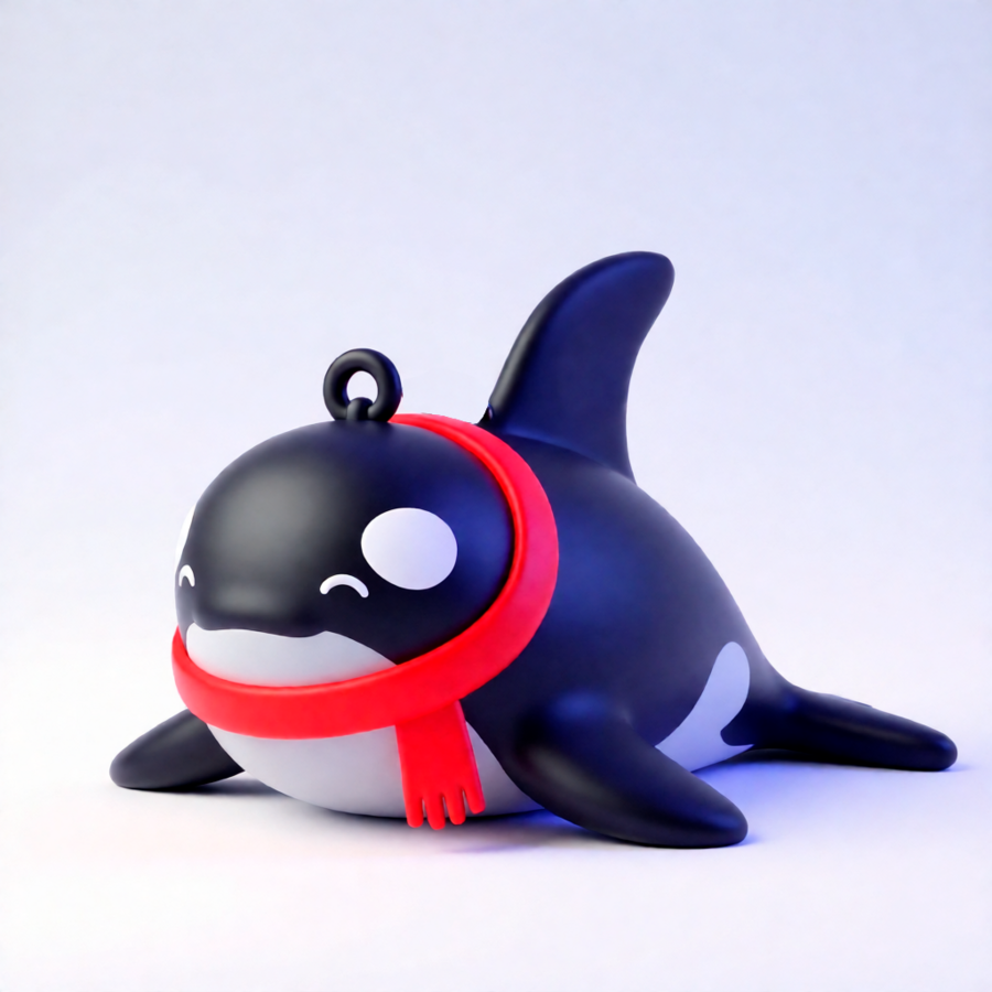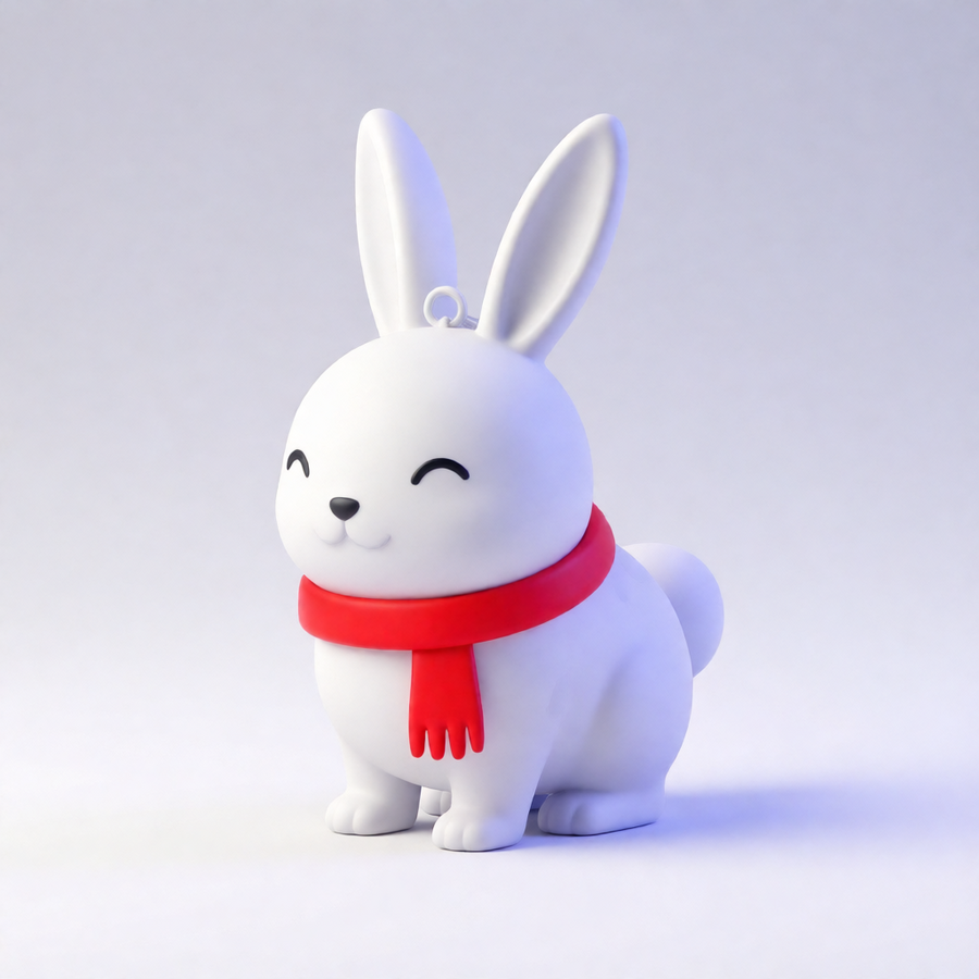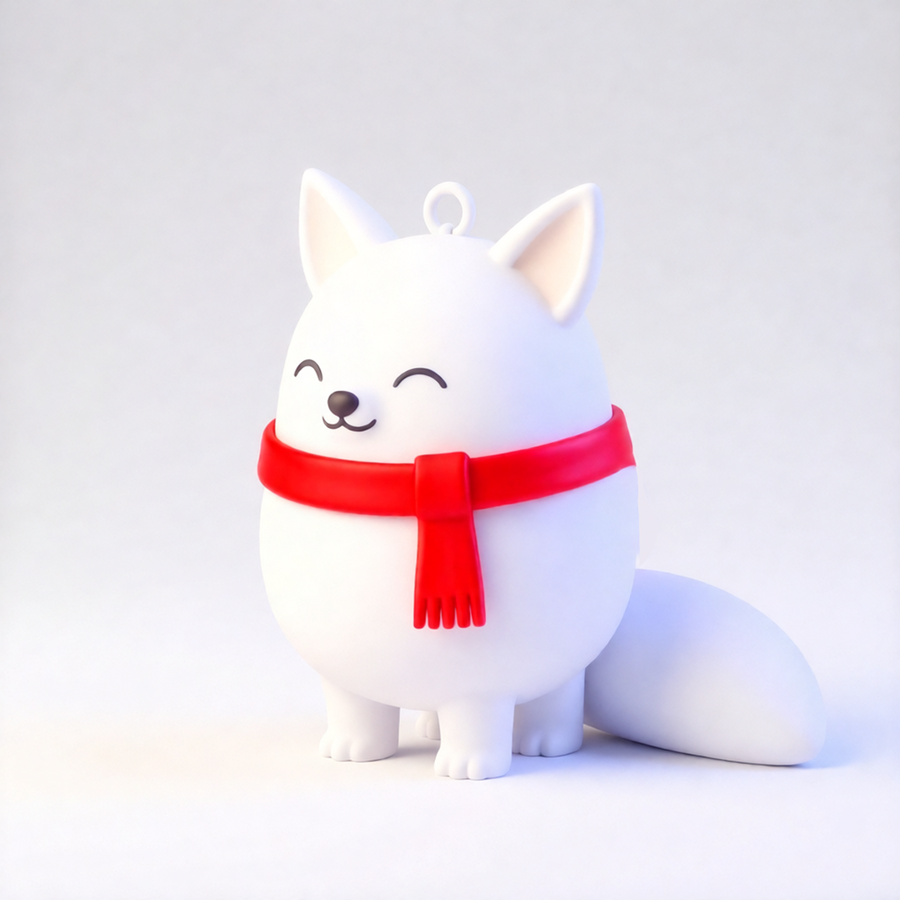 В нейросети Perplexity по моему описанию милых минималистичных животных с красным шарфом я сгенерировала промпт для создания фотографий эскизов в нейросети Qwen. Примерный промпт: cute minimalist 3d keychain toy of an arctic fox standing on four legs in an anatomically correct way, chibi proportions, big rounded body, small smooth triangular head, small pointed ears with rounded tips, smooth surfaces, upright standing pose with four short legs clearly separated, large simple tail as one thick curved shape touching the ground and helping balance, closed smiling eyes as simple curved lines, small dark nose, no fur texture, wearing a bright red scarf around the neck with one short end hanging toward the tail, small solid circular loop on top of the head for attaching a keychain string, white matte plastic material, soft studio lighting, simple gradient background, front three-quarter view, same unified style as other arctic animal keychain toys