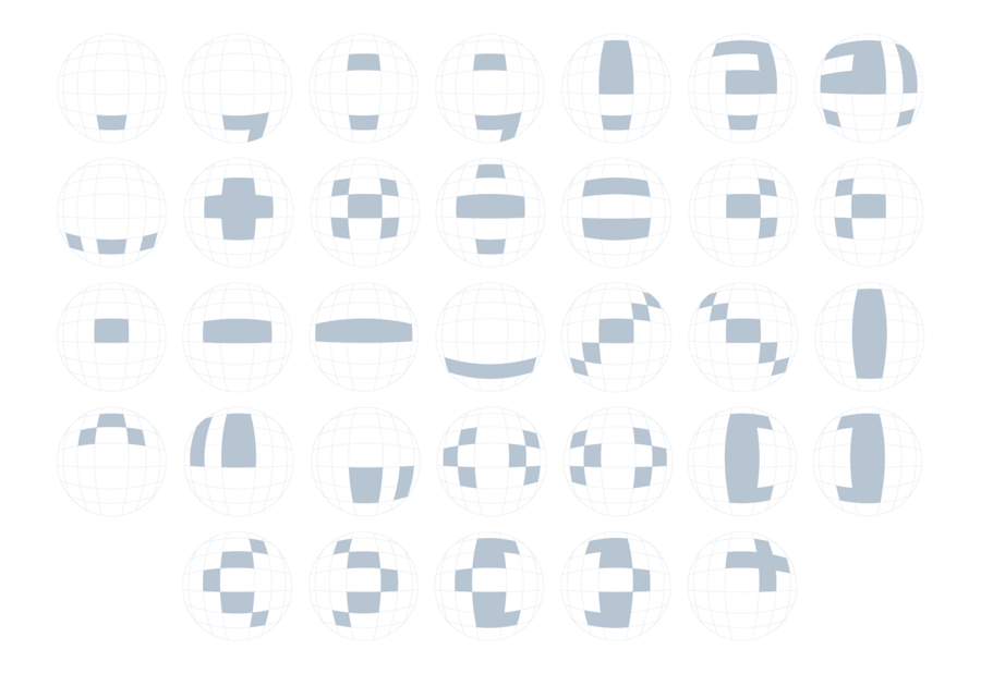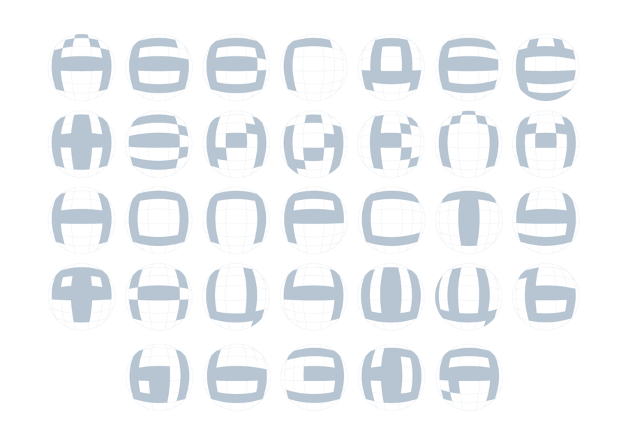 В качестве айдентики для выставки буквы и символы могут перемещаться по сетке линзы, изменяясь в перспективе