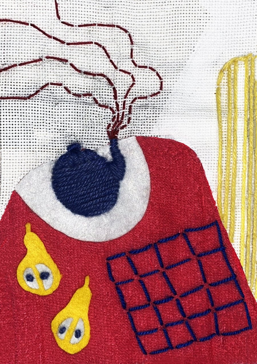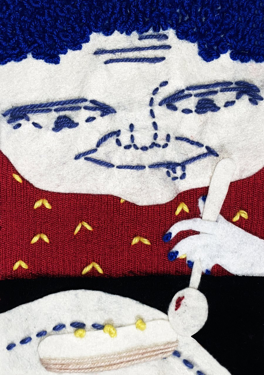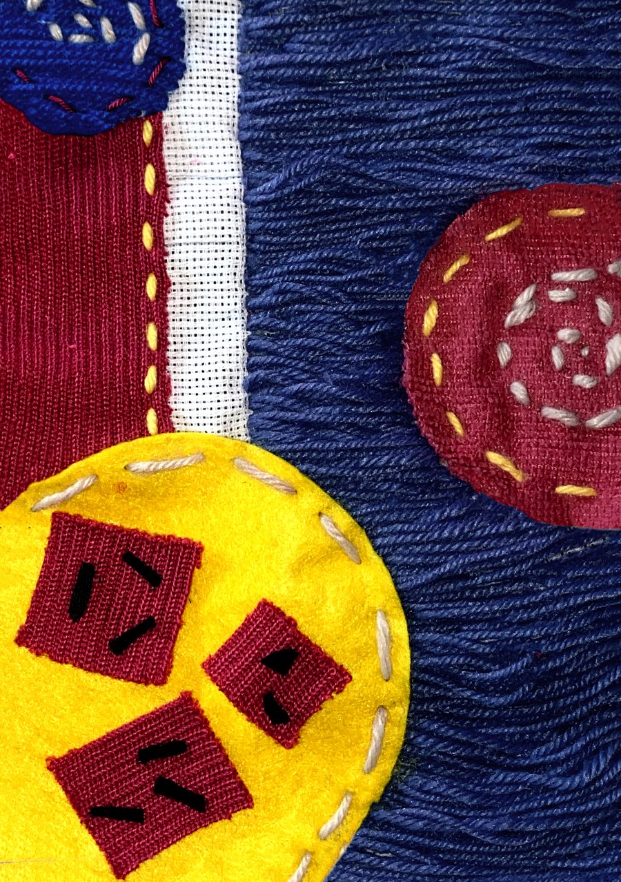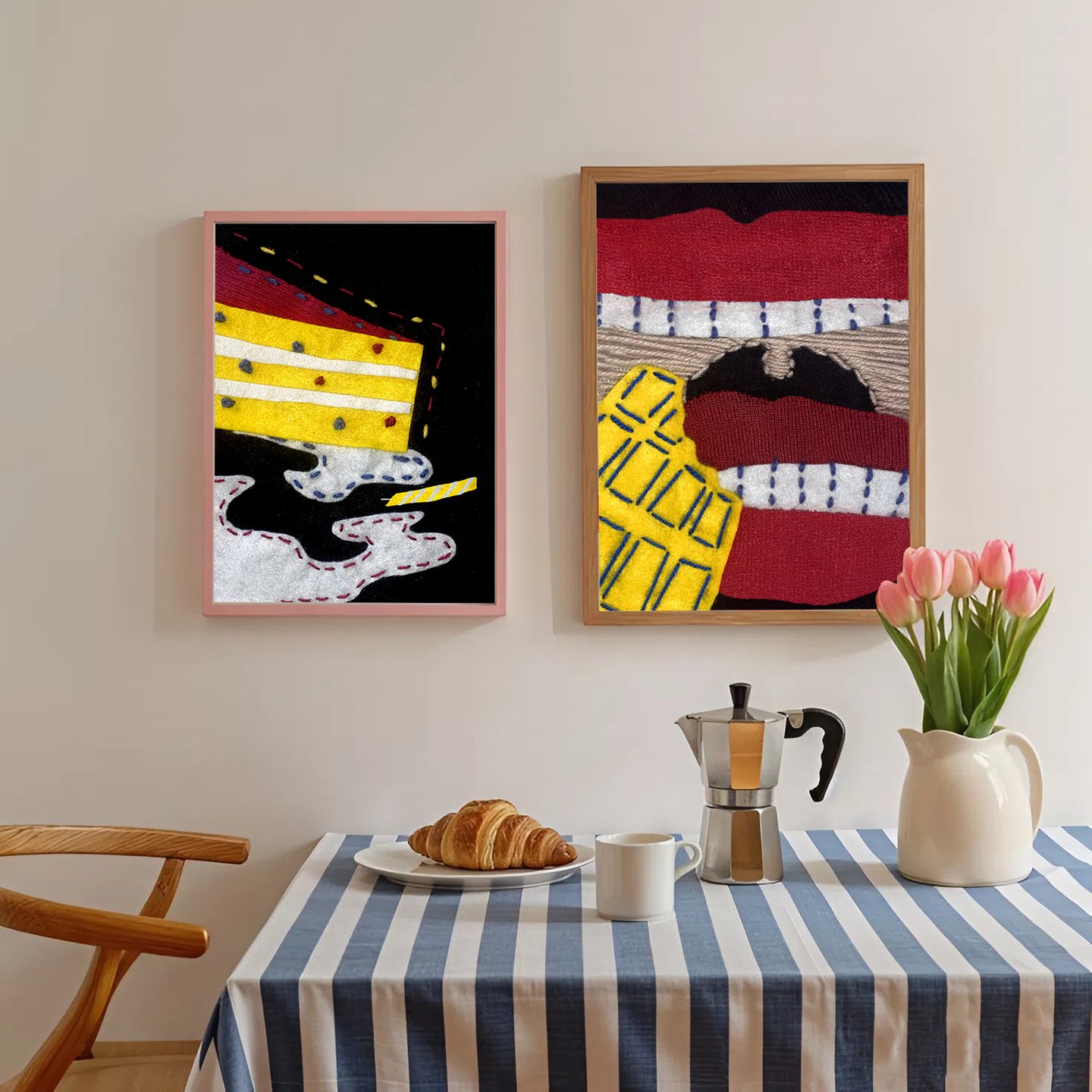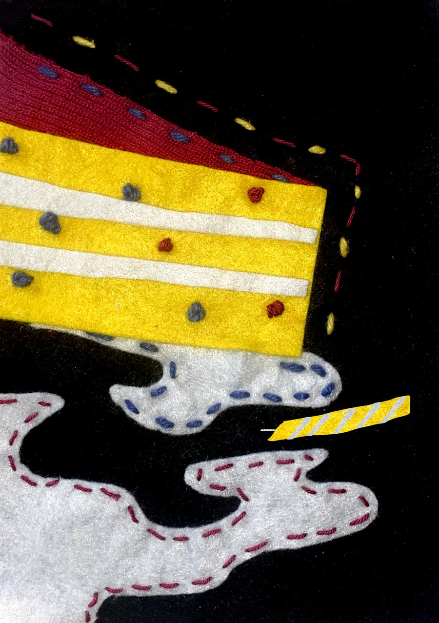 Серия текстильных коллажей, где лоскуты и вышивка складываются в сочный мир сладостей, передавая эмоции яркого восторга.