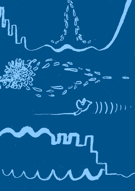 Soar — графическая партитура для иммерсивного аудио-перформанса, повествующая о первом полёте птицы и переживании столкновения с окружающей средой.
