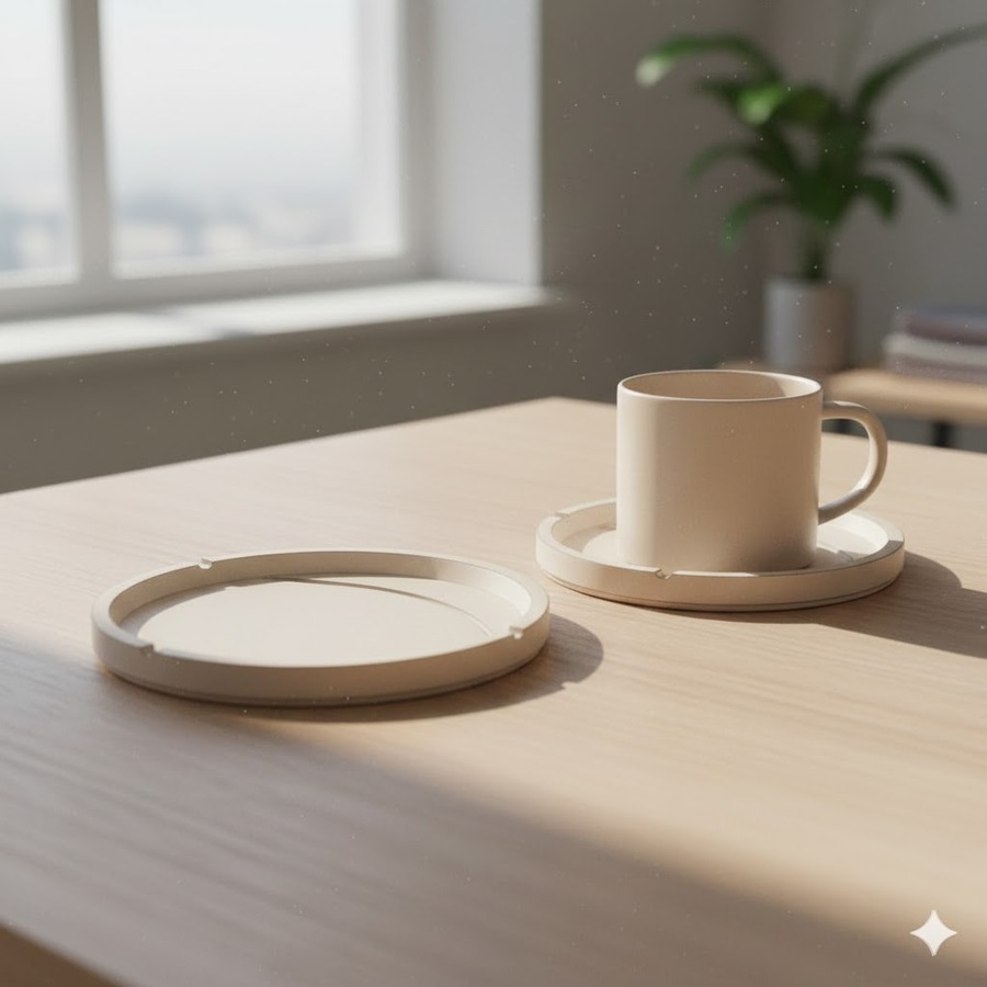 Подставка под кружку — нейтральный утилитарный объект, поддерживающий порядок в повседневном ритуале.