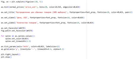 ChatGPT 5.2: попросила написать Python-код для гистограмм цен 90% обычных и 10% самых дорогих товаров