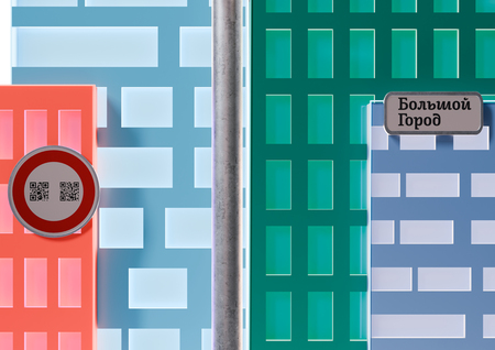 ▸ Концепция стенда — «Говорящий город», который сам о себе рассказывает. В нем сконцентрировано несколько элементов, ассоциирующихся с городской средой — здания, светофор, дорожные знаки. Также есть место для магнитофона, из которого звучат новости. Так, видя стенд, кажется будто о новостях говорит сам город. Инсталляцию хорошо видно в темное время суток, так как основные ее элементы обладают подсветкой. Таким образом, не только звук, но и яркий визуал акцентирует внимание на стенде.