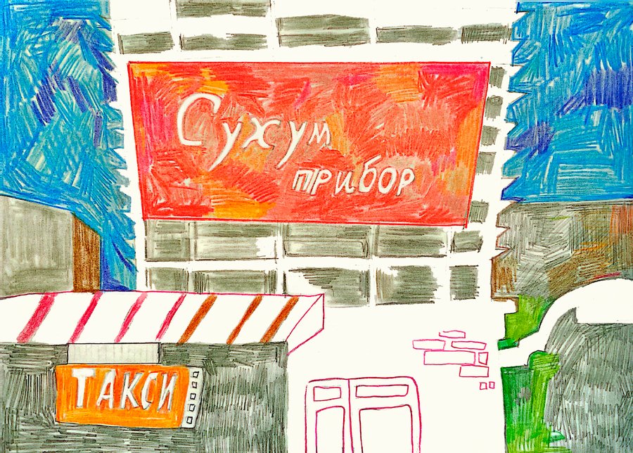 Сухумский рынок — это шумное и тесное скопление прилавков, внутри пространство пестрит множеством знаков: яркие рекламные вывески соседствуют с потрёпанными рукописными табличками с ценами. Его планировка хаотична. Этот визуальный и организационный беспорядок — его суть, но именно в этой каше из вывесок и товаров можно найти самое неожиданное