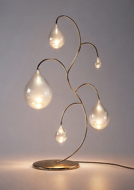 Момент рассвета, когда первые лучи солнца подсвечивают капли росы. Это мимолётное состояние природы, переведённое в предмет, который удерживает в себе ту же хрупкость, невесомость и чистоту. Лампа не просто светит, а создаёт ощущение тихого движения и живого равновесия.