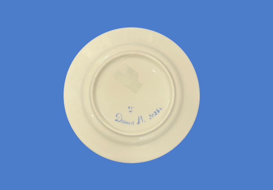 Копия первого варианта первой тарелки с улучшенной техникой надглазурной росписи.