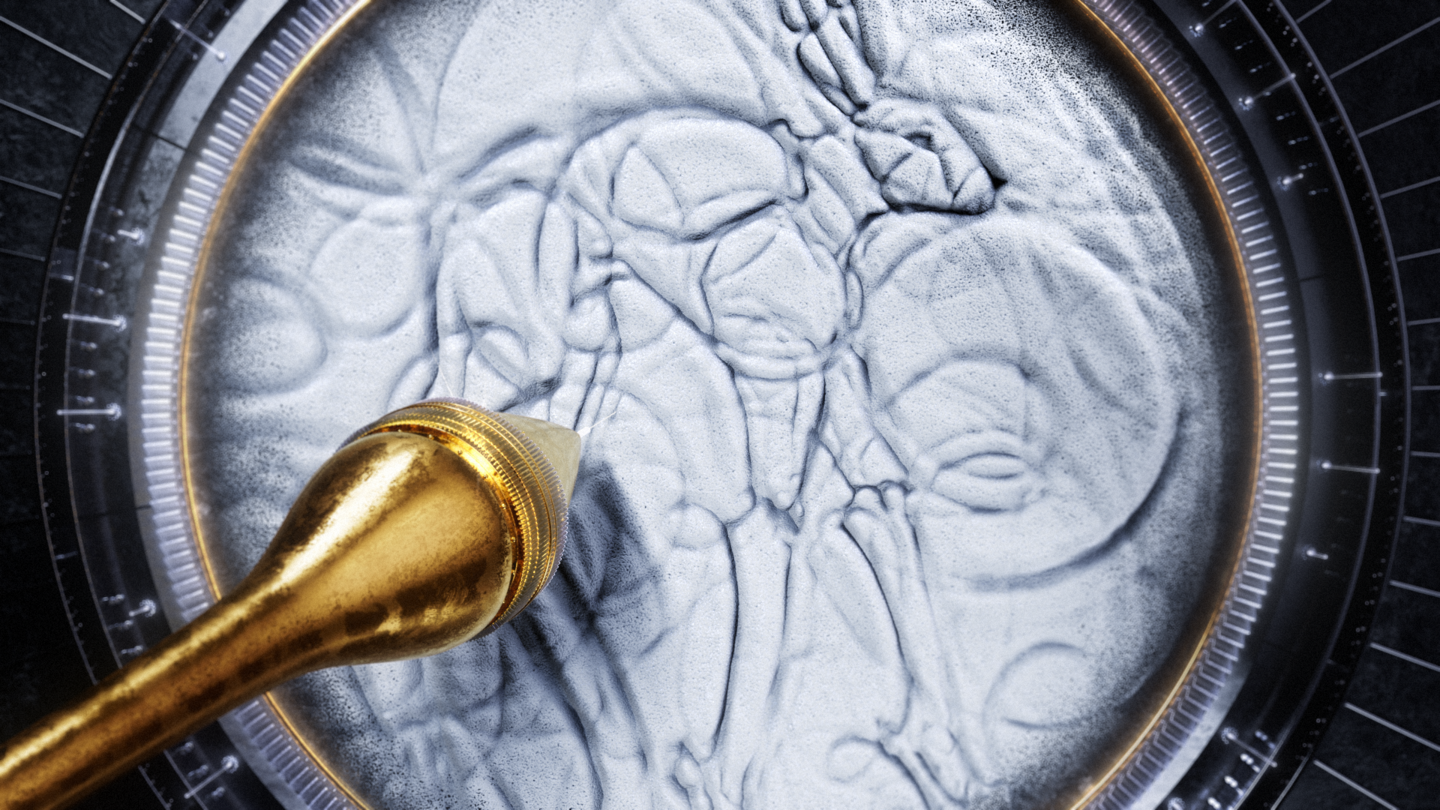 При реализации сцены с открывающими титрами я опирался на принципы моушн-графики, применимые к подобному контенту. Продакшен стайлфрейма был выполнен согласно полному cg-пайплайну: симуляция, шейдинг, комозитинг. Сцена была собрана в Cinema 4D, посчитана в Redshift и обработана в After Effects.