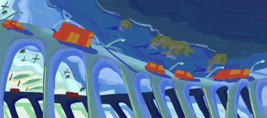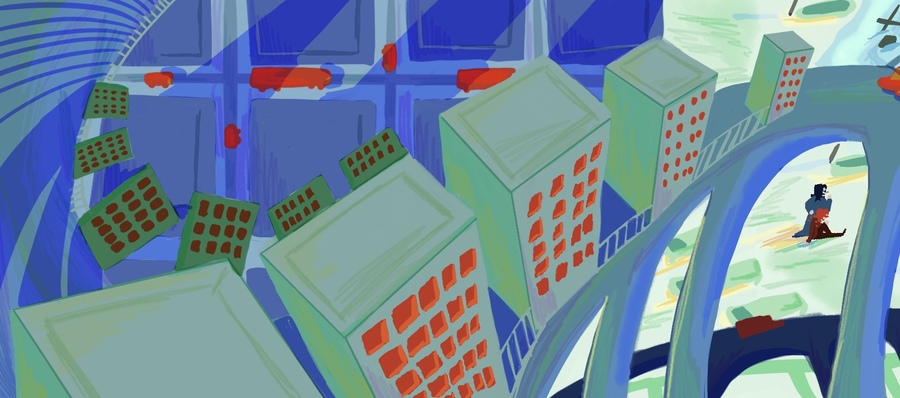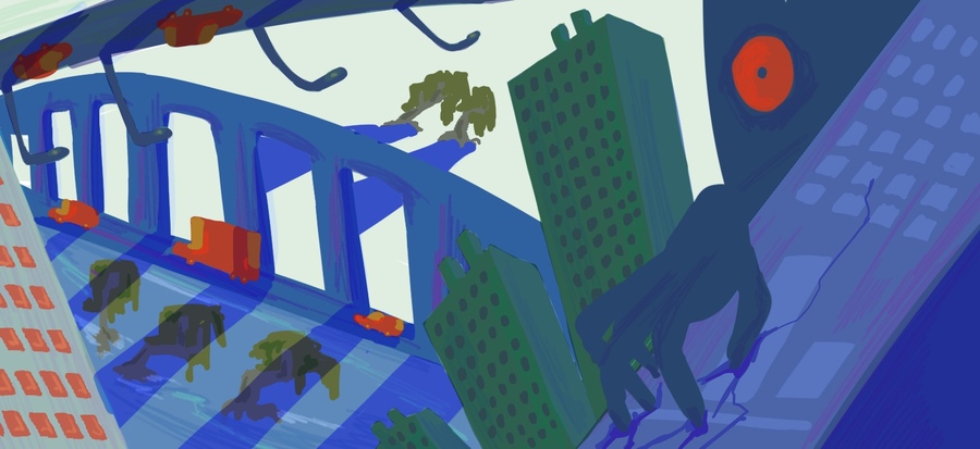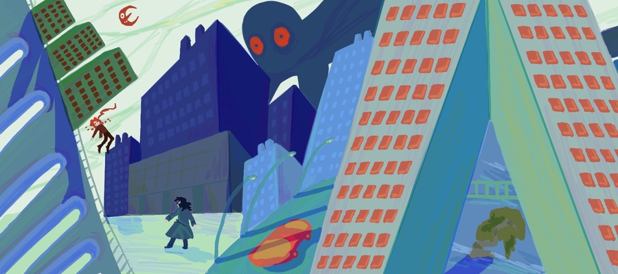 «The world of simulations» — это серия из трех панорам по мотивам личного сеттинга, где я показываю сюрреалистичную городскую среду, постоянно меняющегося мегаполиса, граничащего с потусторонними силами и монстрами.