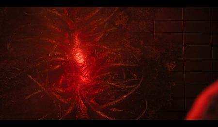 Изображения героев в титрах окрашены в контрастную красно-зелёную палитру, символизирующую два мира в сериале.