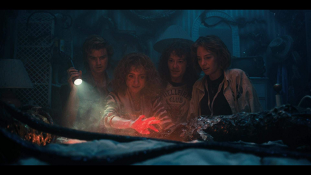 «Stranger Things» — американский научно-фантастический сериал. Сюжет начинается с таинственного исчезновения мальчика, что приводит к раскрытию цепочки сверхъестественных событий.