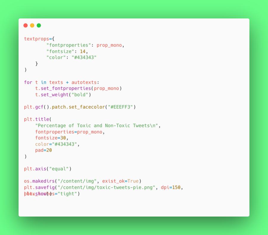 Из диаграммы становится ясно, что большинство твитов являются нетоксичными (93%).