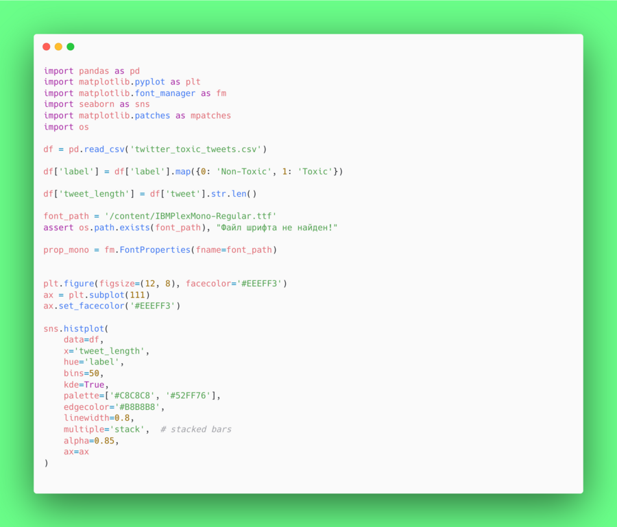 В коде такие записи автоматически исключались при вычислении длины твитов и при преобразовании бинарных меток (0/1 в Non-Toxic/Toxic).