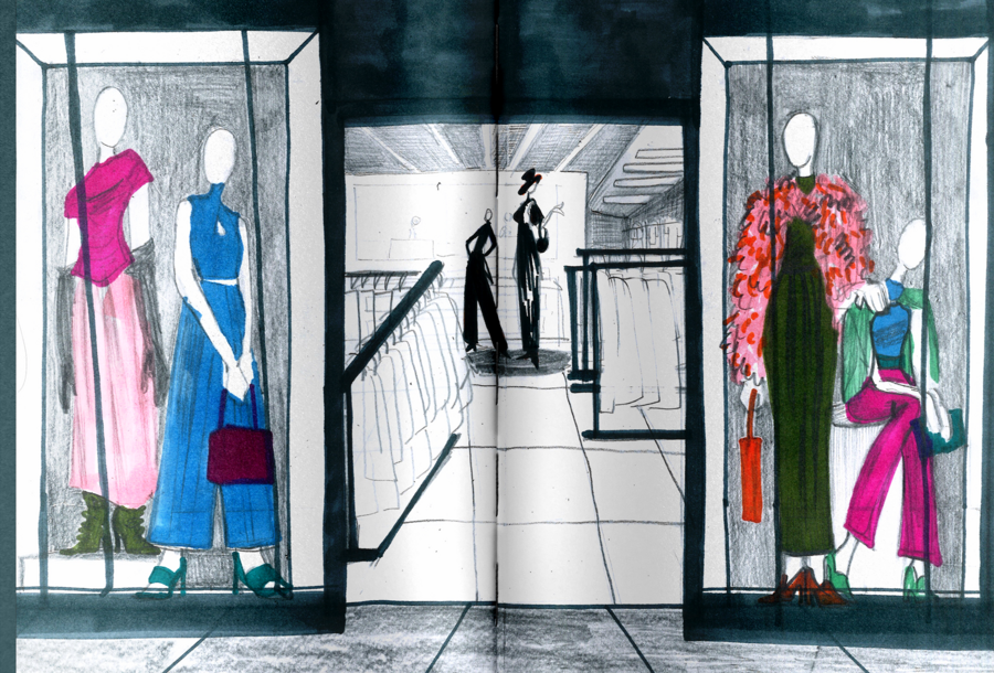 В качестве итогового проекта я решила сделать зин о витринах магазинов, которые увидела в Павелецкой плазе.