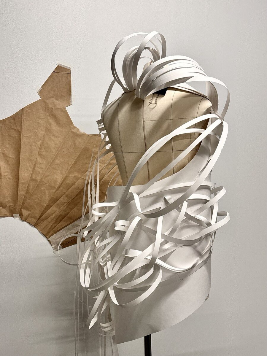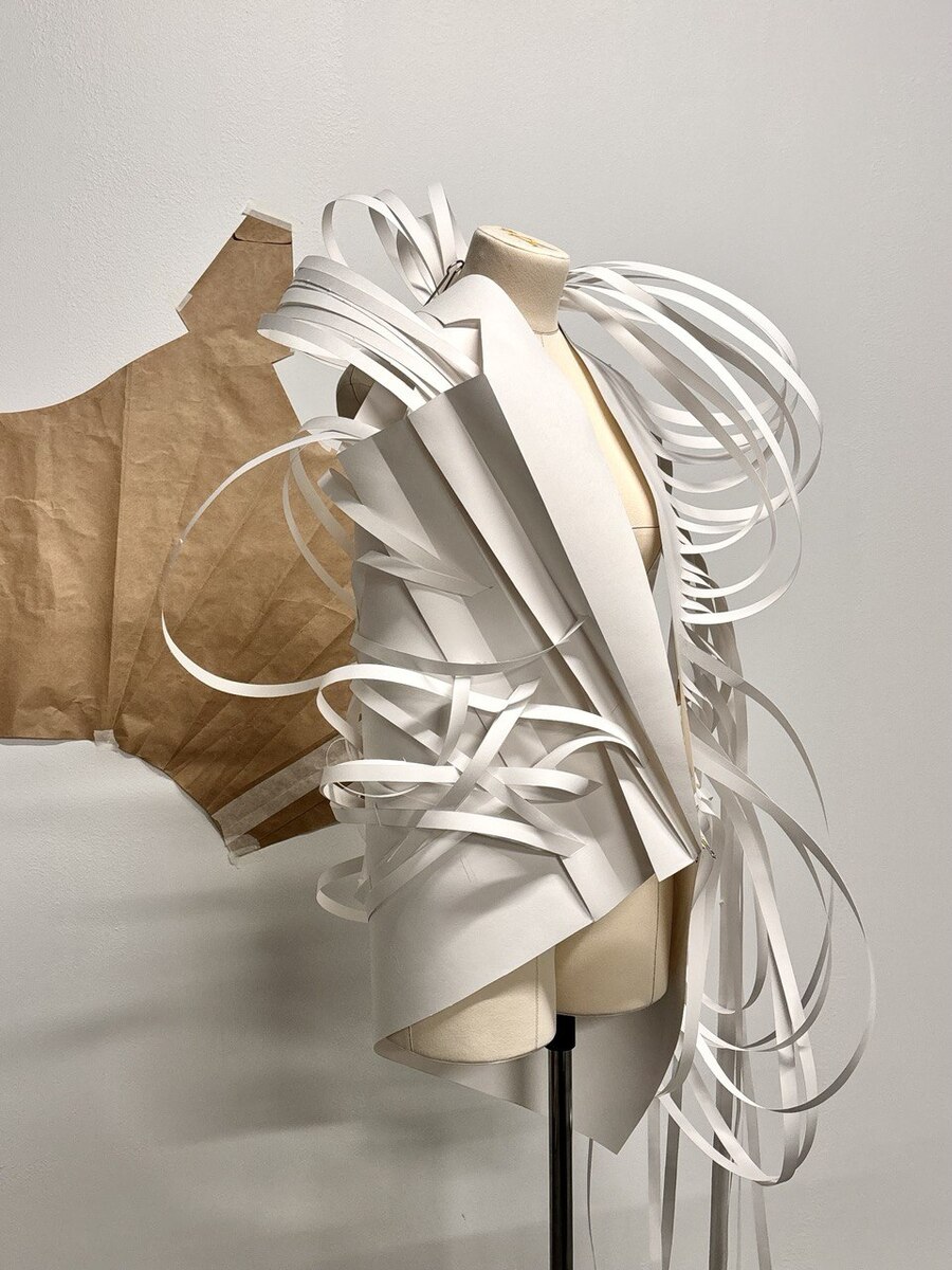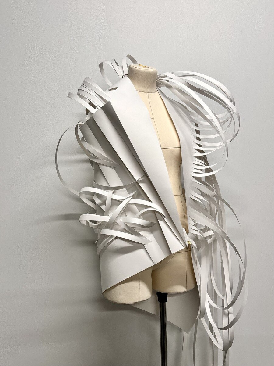 За основу был взят жилет, отсылающий к школьным годам, переходному возрасту. Поверх наложен лацкан — начало трансформации и становление.