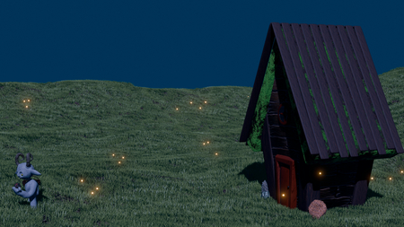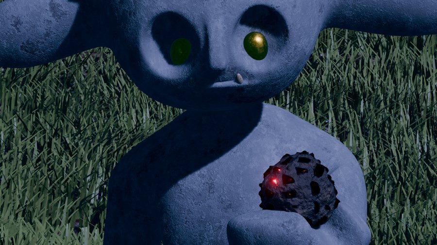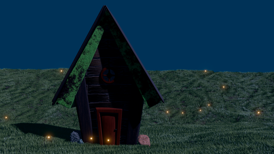 Эта 3D-сцена в Blender рассказывает историю страсти и открытия. Для тролля Шнопа нет большего счастья, чем пополнять свою коллекцию красивых камней. Возвращаясь с очередной удачной вылазки, он замирает у порога дома, обнаружив свой абсолютный триумф.