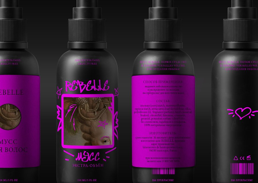 REBELLE — бренд укладочных средств для волос с эклектичным стилем, сочетающим французский шик и немного сумасшествия. Для тех, кто ценит не только результат, но и процесс, не боится экспериментировать, быть разным, быть собой. Укладочные средства REBELLE помогут в создании не только идеальной прически, которая выдержит 10 версальских балов и столько же концертов панк-рока, но и вашей собственной истории.