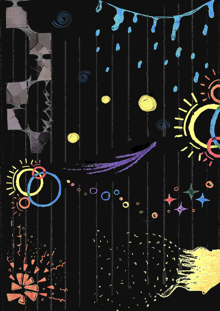 Круги символизируют повторение одного звукового паттерна, прямые линии — реверберацию. Белые волоски обозначают белый шум. Текстуры звучат так же, как выглядят: снег, шелест цветов, вода, хруст скорлупы.