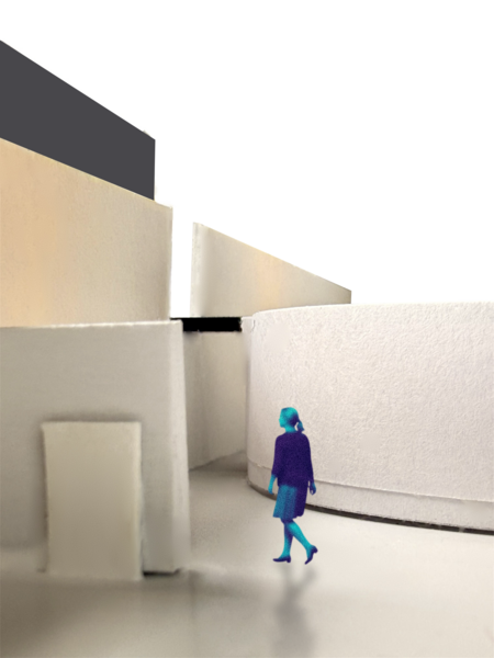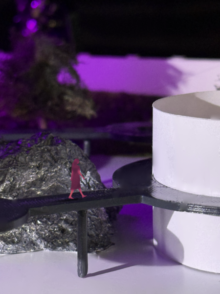 В макете предусмотрена подсветка согласно основному проекту выставки. Для нее был вырезан фрагмент подмакетника и установлен портативный свет.