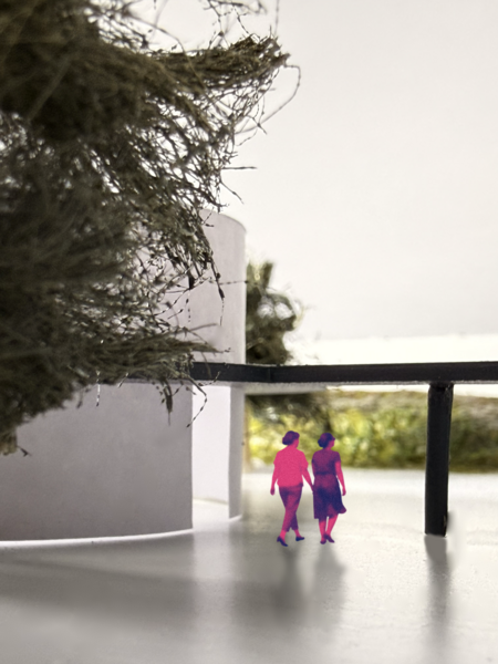 Творчество художницы отразилось и на выборе материалов. В проекте использовано два вида пластика, что по своей сути является одной из интерпретаций современных «райских» реалий. Макет нарочно обделен природными материалами — вместо них создана имитация растительного мира Эдема.