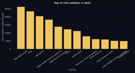 last_year = int (df[«year»].max ()) top12 = ( df[is_country & (df[«year»] == last_year)][[«country», «co2»]] .dropna () ) top12 = top12[top12[«co2»] > 0].sort_values («co2», ascending=False).head (12)