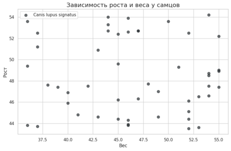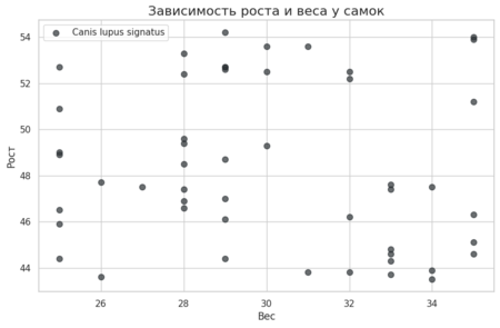 Как можно заметить, всё-таки половой диморфизм у волков присутствует: самцы значительно крупнее самок как в весовой, так и в ростовой категориях.