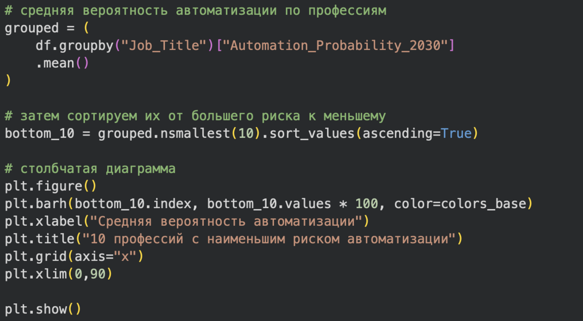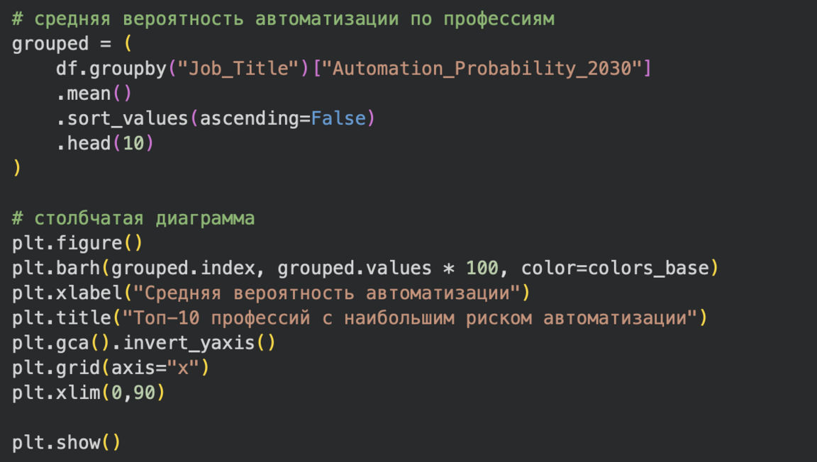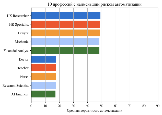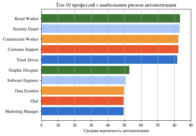 На столбчатых гистограммах хорошо видно какая из профессий будет более востребована в эпоху ИИ, а какие профессии будут заменены ИИ.