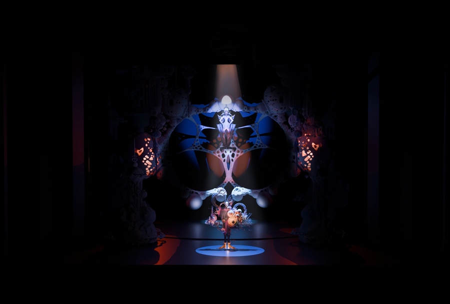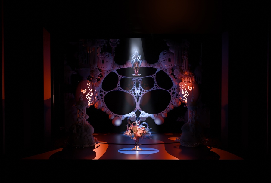Декорация трансформируется: меняет ориентацию и открывает внутренние полости. Пространство перестаёт быть устойчивым и начинает восприниматься как разлом или бездна.