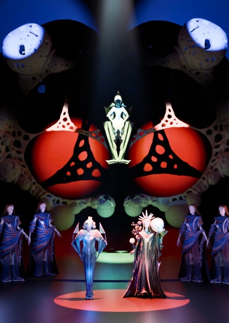 В их основе — ассоциации с космической пылью, планетарными телами, фрагментами небесных структур и искусственными формами, возникающими на стыке природы и технологии. Через цвет, фактуру и свет костюмы подчёркивают различие сил и состояний героев, оставаясь визуально сдержанными по отношению к сложной сценографии.