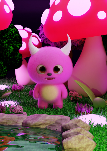 В волшебном лесу, среди светящихся грибов и мягкой изумрудной травы, живёт маленький монстрик по имени Пинки. Он добрый и любопытный, любит гулять у лесного пруда и наблюдать, как в воде отражаются огоньки ночного леса. Пинки охраняет уют и магию этого места, встречая каждого гостя с улыбкой и наполняя волшебный лес теплом и сказкой.