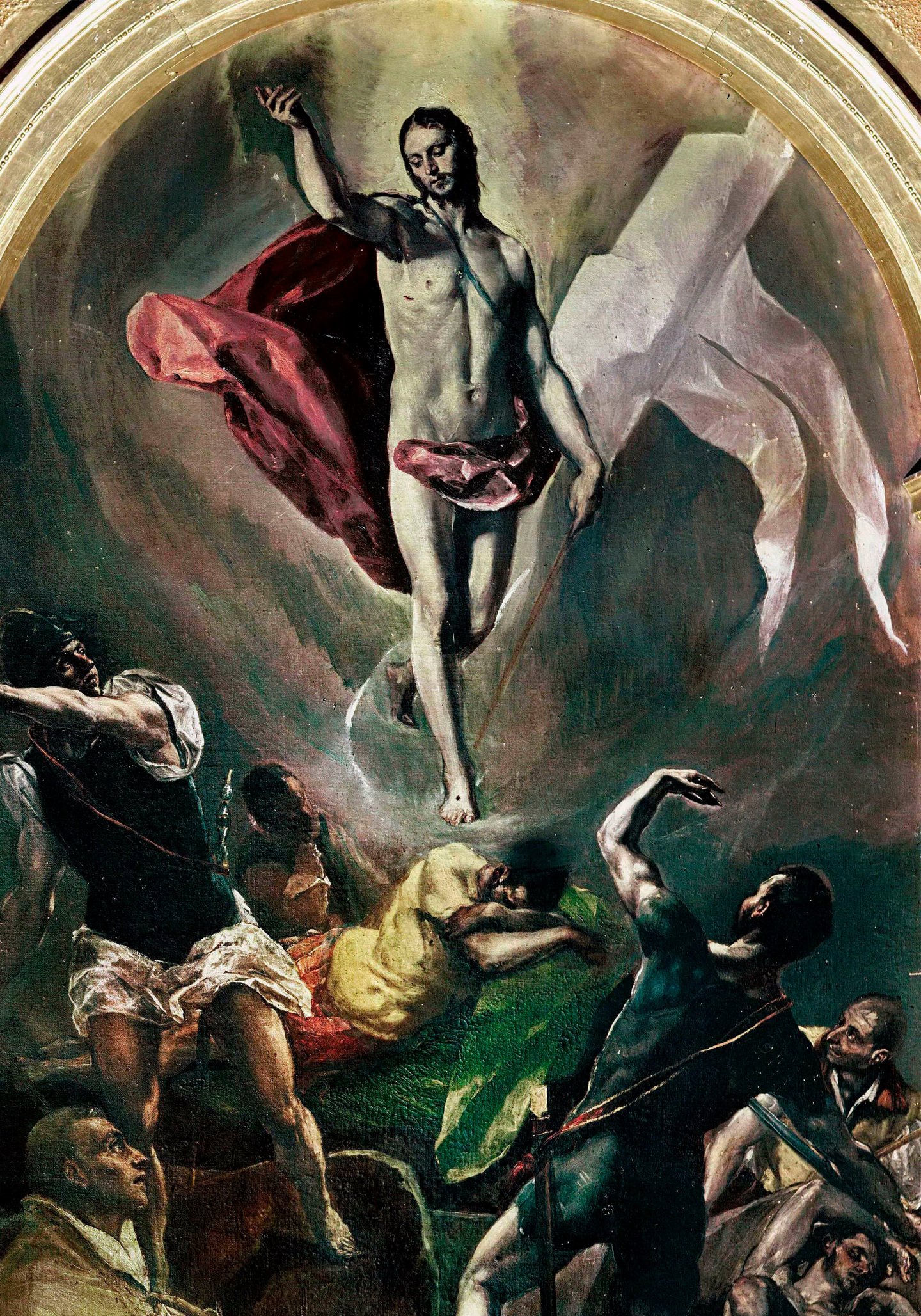 На обоих фрагментах пространство вокруг Христа динамично, но по–разному: в первом случае сына Божьего обволакивает яркий небесный свет, визуально отделяя Его от толпы людей и подчёркивая значимость и торжественность момента воскресения. Во втором же случае пространство является тем самым олицетворением внутреннего мира героя: оно динамичное, но мрачное и тяжёлое, словно «сдавливает» Христа. Эль Греко умело преподносит как тяжёлые, так и торжественные, праздные сюжеты благодаря невероятной работе не только над героями и их эмоциями, но и над пространством.