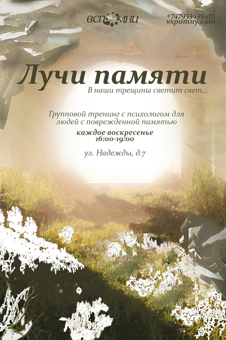 лучи памяти — тренинг с психологом, в котором люди с нарушениями памяти встречаются в группе, чтобы обрести опору и чувство сопричастности. Как лучи, соединяясь, образуют яркий свет, так и участники вместе находят силы идти вперёд.