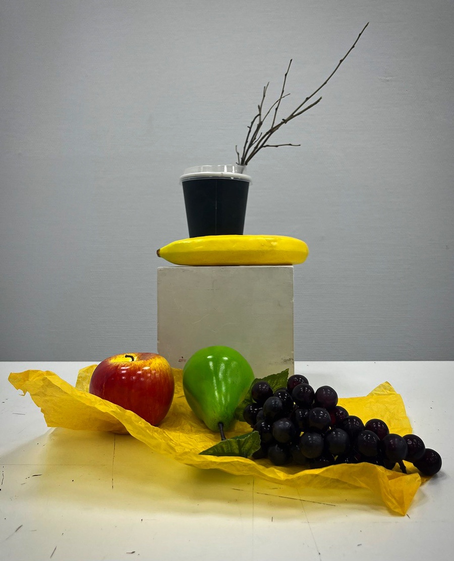 Все элементы проекта — искусственные фрукты, минимализм, случайная расстановка, стакан с ветками, абсурдное название — работают как механизмы, запускающие необходимую реакцию. Настоящий смысл проекта заключается не в предметах, а в процессе восприятия: в том, как зритель начинает интерпретировать, додумывать и наделять работу значением, исходя из собственных ожиданий и желания увидеть искусство.