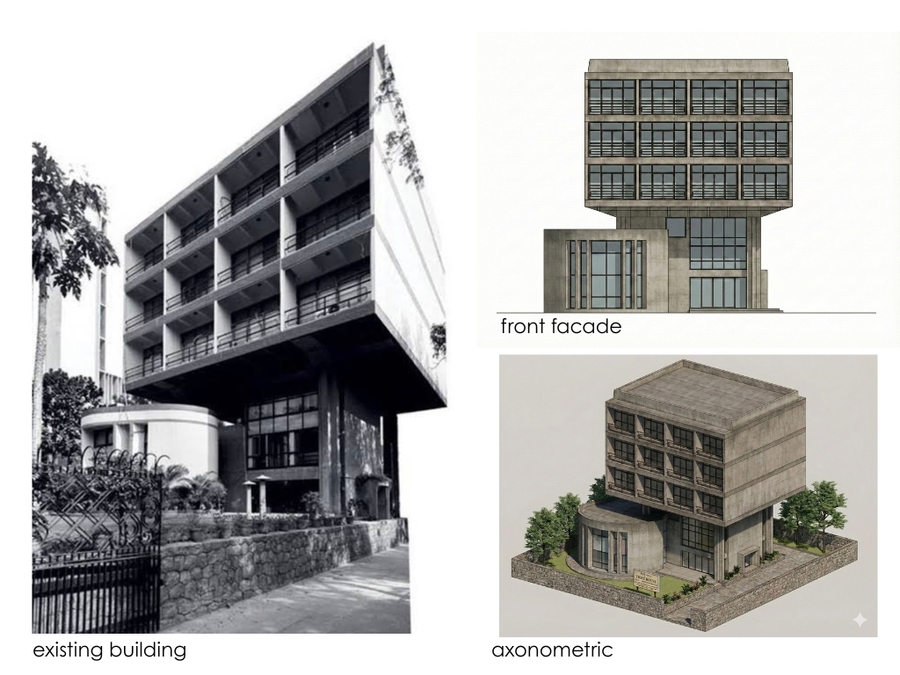 Tibetan art and artifacts housed within Tibet House—particularly thangkas (paintings), manuscripts, and ritual objects are inherently fragile and traditionally treated as layered, portable archives rather than static displays. These objects are wrapped, unwrapped, filtered through light, and revealed gradually, emphasising protection as much as visibility. This sensitivity to light is reflected in the original building itself; constructed in 1974 in a restrained Brutalist architectural language, the museum incorporates largely closed east and west façades to minimise direct sunlight and ensure controlled interior conditions. The proposed façade intervention builds upon this logic, not by altering the existing structure, but by introducing a secondary layer that extends the building’s original protective intent. Through perforation, depth, and gradient, the new skin operates as an architectural filter offering controlled light modulation and visual symbolism while remaining subordinate to, and respectful of, the original Brutalist massing. (Fig. Teacher (lama), Ground Mineral Pigment on Cotton, 1800 — 1899)