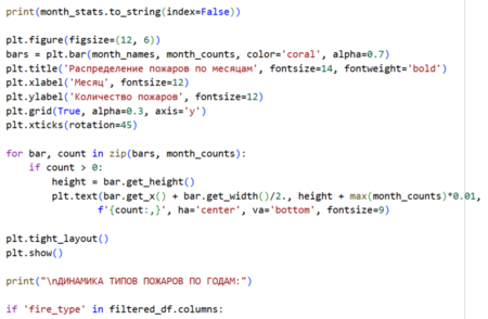 Месячный анализ — выявил сезонные закономерности и наиболее пожароопасные месяцы