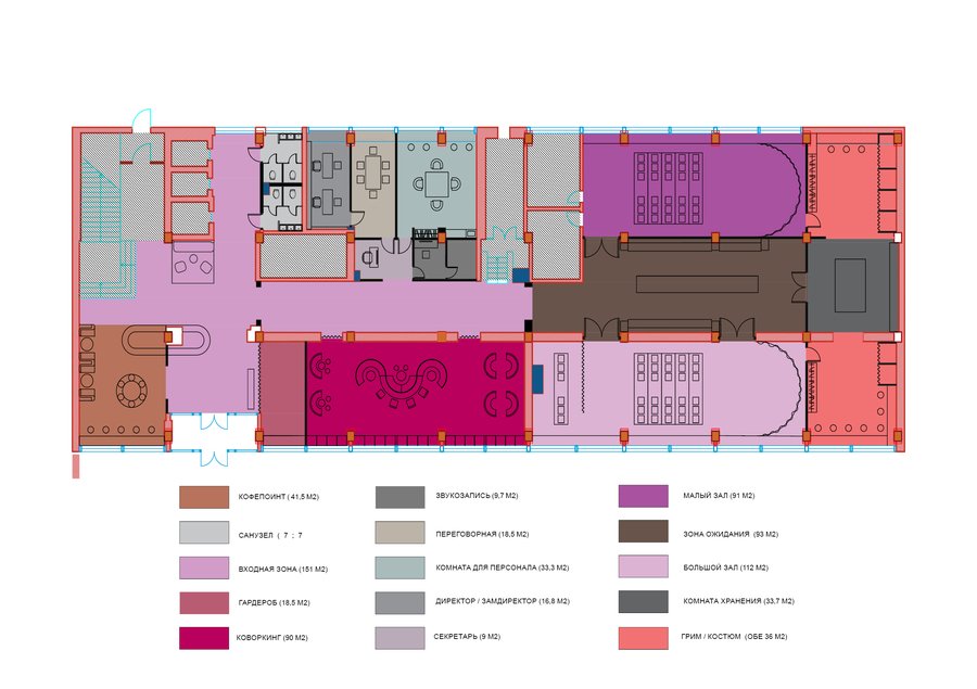 «За сценой» — это пространство для репетиций, театральных читок, мастер-классов по актерскому мастерству и неформальных встреч деятелей искусства.