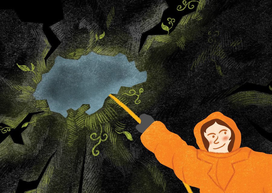 Главный герой, спелеолог, спускается в пещеру и показывает детям её обитателей, подземные озера и реки, сталактиты и сталагмиты.