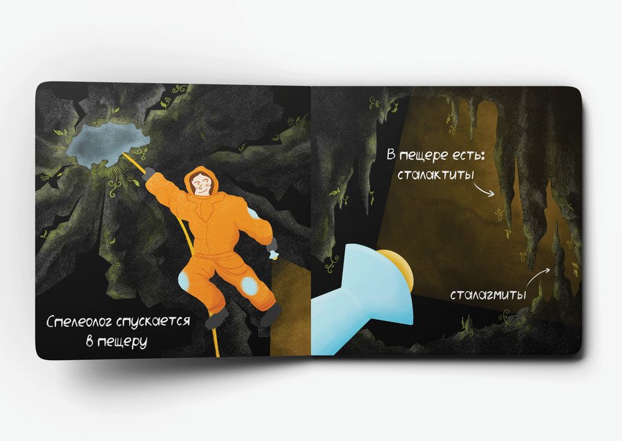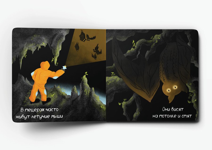«Жизнь в пещере» — детская книжка-картонка про пещеры и кто в них живёт.